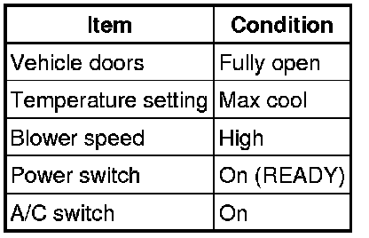 (1) Prepare the vehicle according to the chart below.