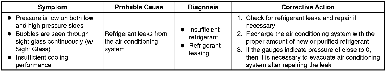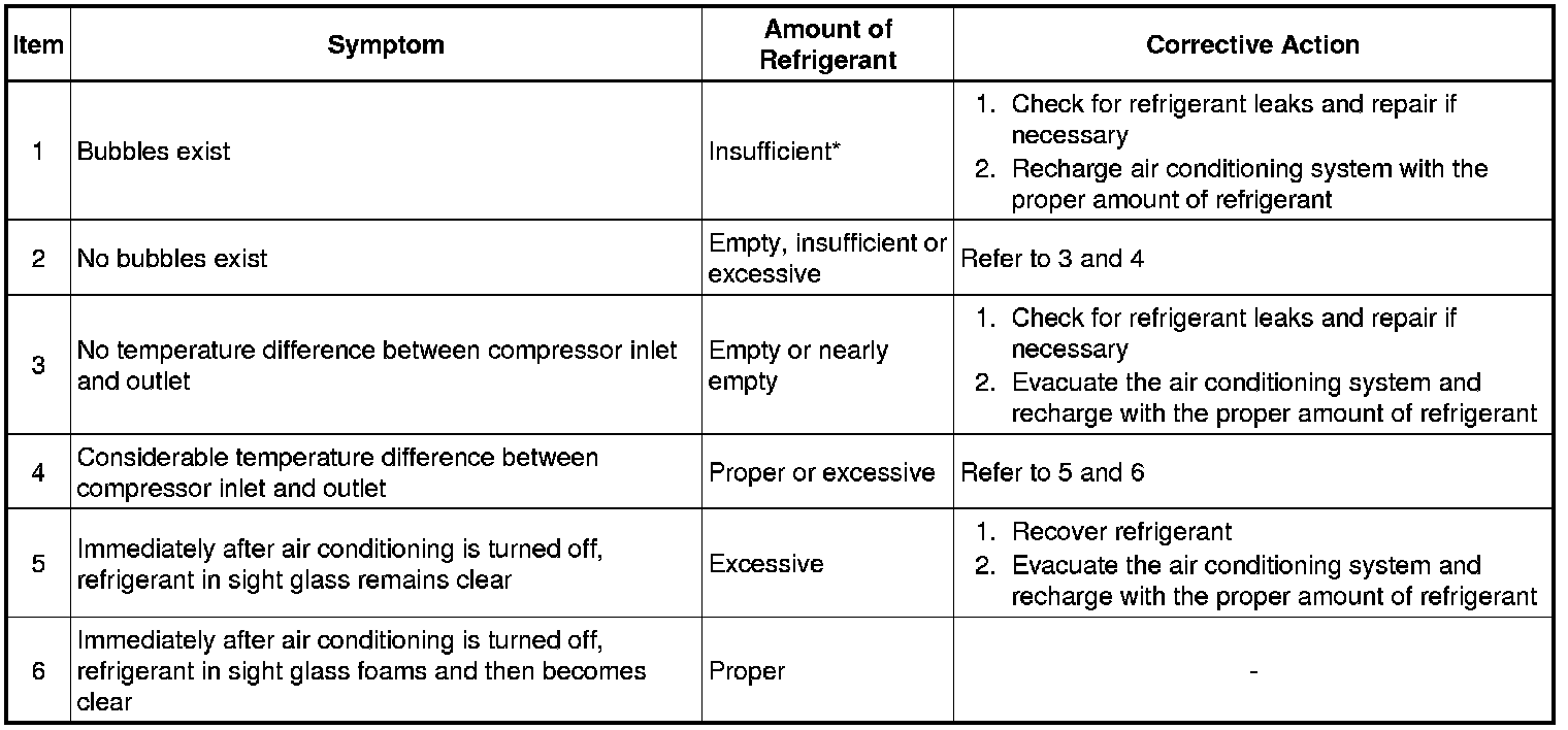 *: Bubbles in the sight glass with the vehicle's interior temperature above 35°C (95°F) can be considered normal if cooling is sufficient.