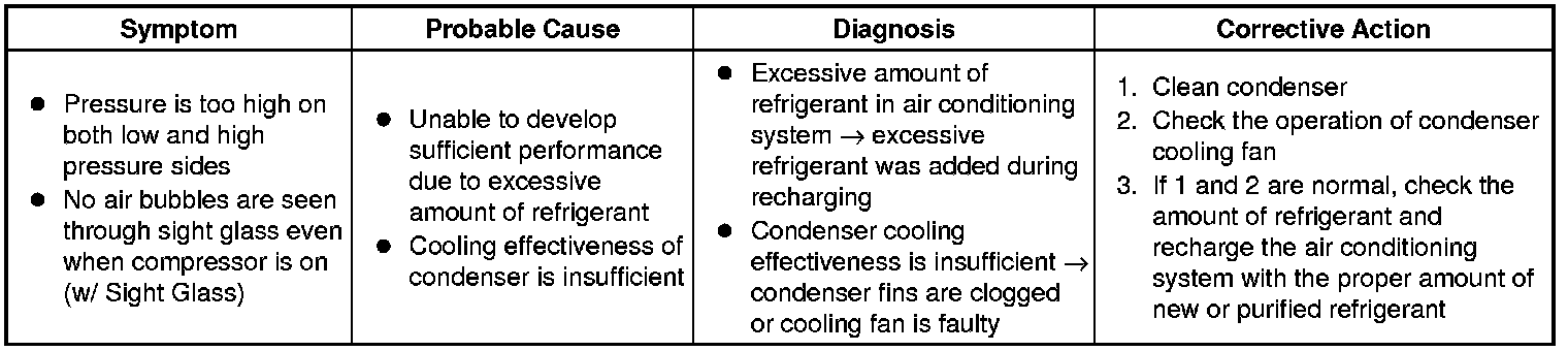 (6) Air conditioning system is overcharged or cooling effectiveness of condenser is insufficient.