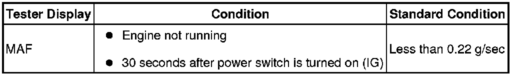 * If the result is not as specified, replace the mass air flow meter.