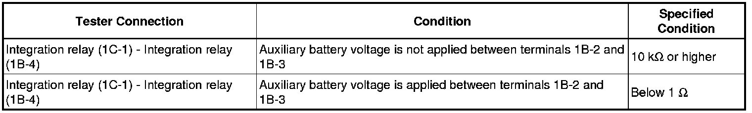If the resistance is not as specified, replace the integration relay.