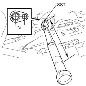 * The "with SST" torque value is effective when using SST with a fulcrum length of 30 mm (1.18 in.) and a torque wrench with a fulcrum length of 300 mm (11.8 in.) Service Precautions.
