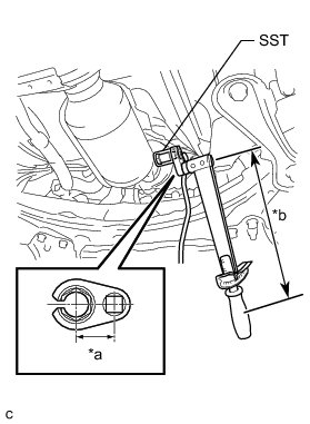 * The "with SST" torque value is effective when using SST with a fulcrum length of 30 mm (1.18 in.) and a torque wrench with a fulcrum length of 300 mm (11.8 in.) Service Precautions.