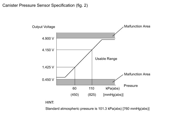 The vent valve is turned on (closed) and the EVAP pressure is then measured. If the variation in the pressure is less than 0.5 kPa(gauge) [3.75 mmHg(gauge)], the ECM interprets this as the purge VSV being stuck closed, and illuminates the MIL and stores DTC P0441 (2 trip detection logic).