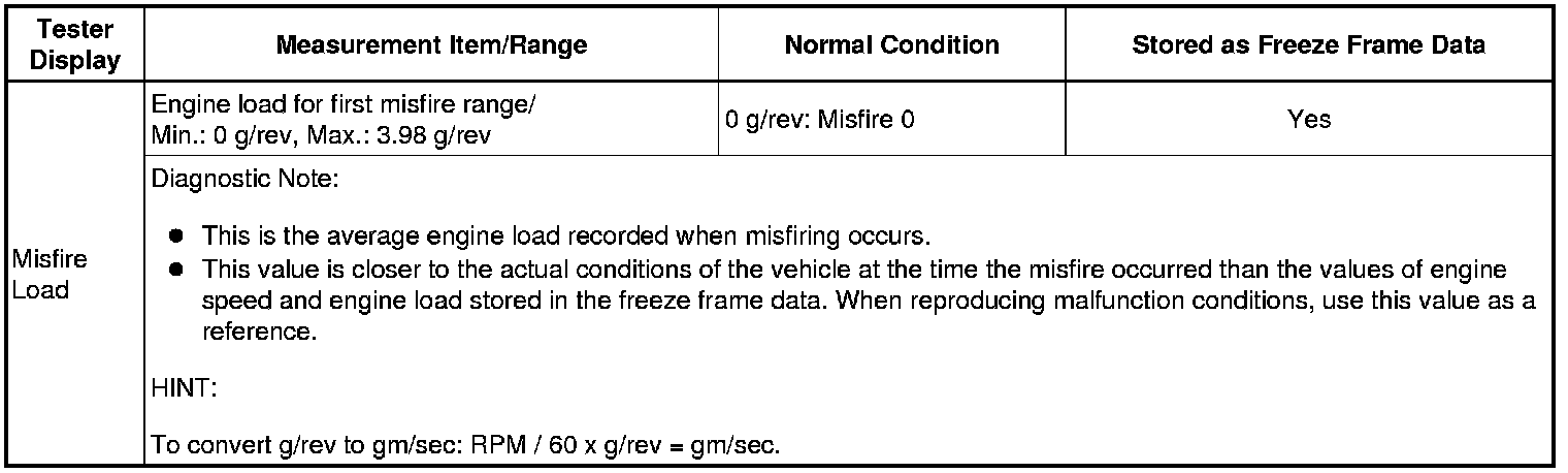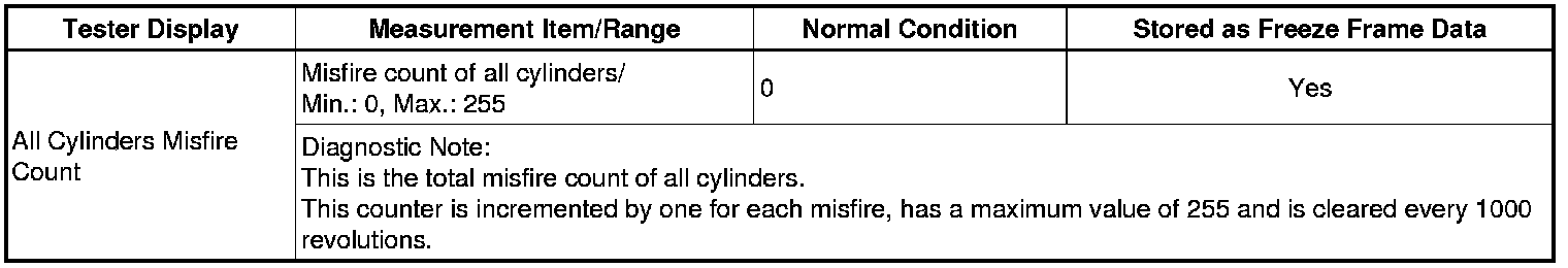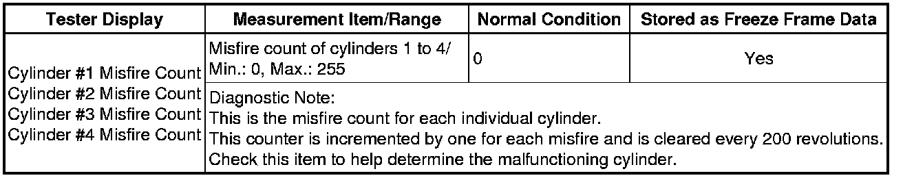 Cylinder #1 Misfire Count to Cylinder #4 Misfire Count