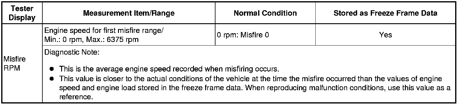 As the data values of the Active Test return to their default values when engine is stopped, the engine speed value of each cylinder cannot be observed. Therefore, it is necessary to use the data recorded with the snapshot function to check the engine speed values recorded during engine running.