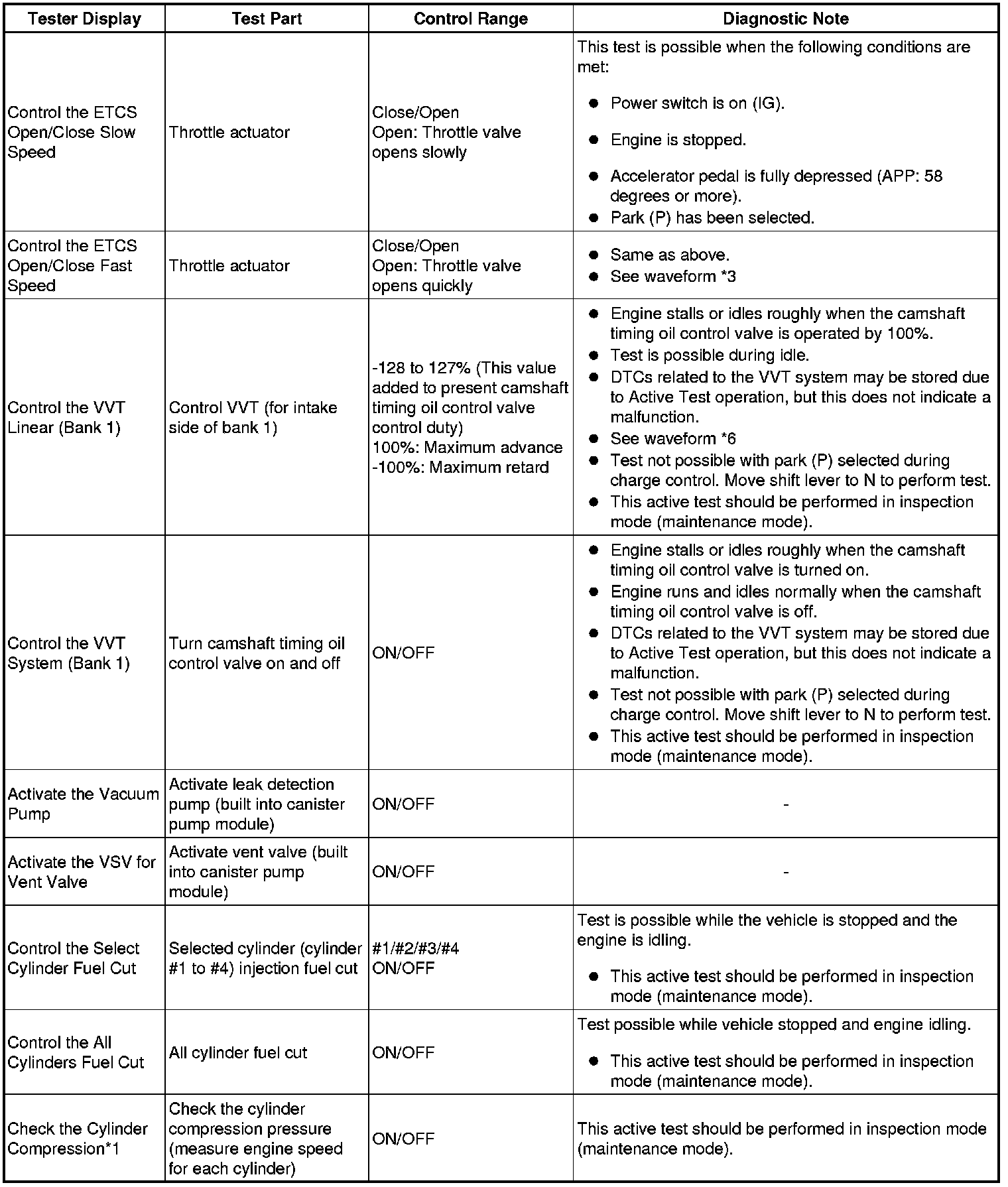 *1: While the Check the Cylinder Compression Active Test is being performed, if the speed of one cylinder is more than the other cylinders, it can be determined that the compression pressure of that cylinder is lower than the other cylinders.