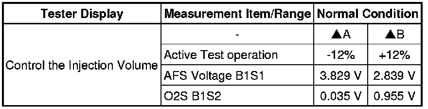 * Usually, the value of AFS Voltage B1S1 changes to below 3.1 V when the control value for Control the Injection Volume is changed to +12%.
