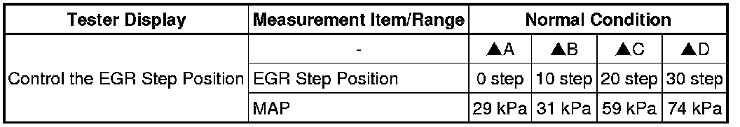 * Usually, when the control value for Control the EGR Step Position is "0 step", the value of MAP is between 20 and 40 kPa and idling is stable.