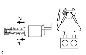 (1) Connect a positive (+) auxiliary battery lead to terminal 1 and a negative (-) lead to terminal 2, and check the movement of the valve.
