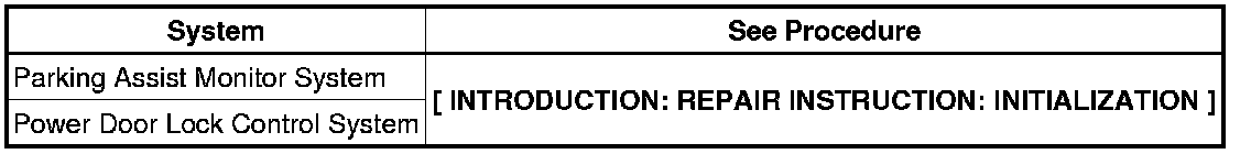 When disconnecting the auxiliary battery negative (-) cable, initialize the following system(s) after the cable is reconnected: