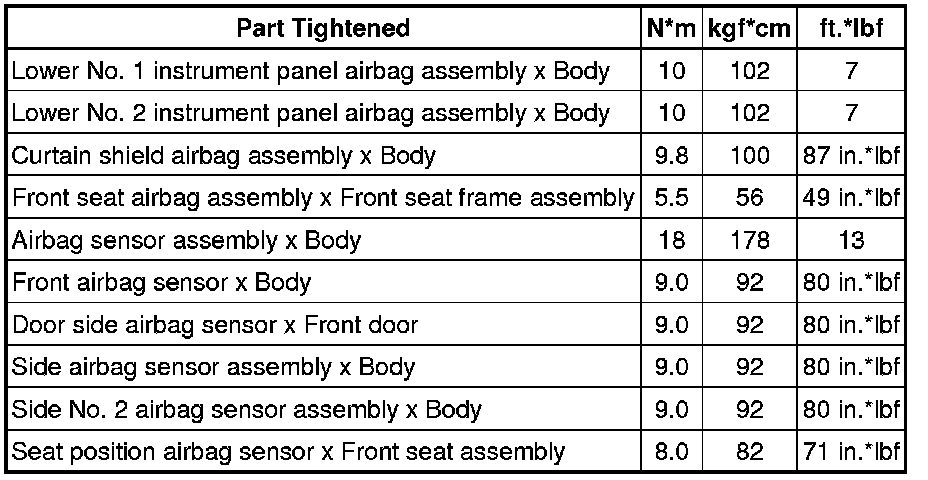 SPECIFICATIONS: SUPPLEMENTAL RESTRAINT SYSTEMS: TORQUE SPECIFICATIONS