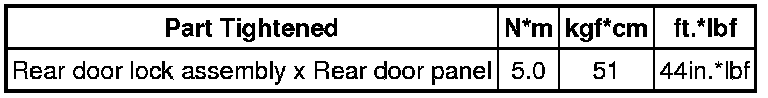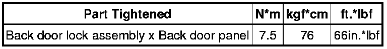 SPECIFICATIONS: DOOR LOCK: TORQUE SPECIFICATIONS