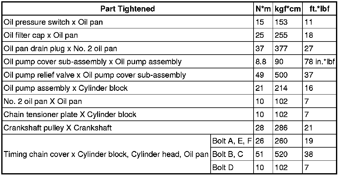 SPECIFICATIONS: 2ZR-FXE LUBRICATION: TORQUE SPECIFICATIONS