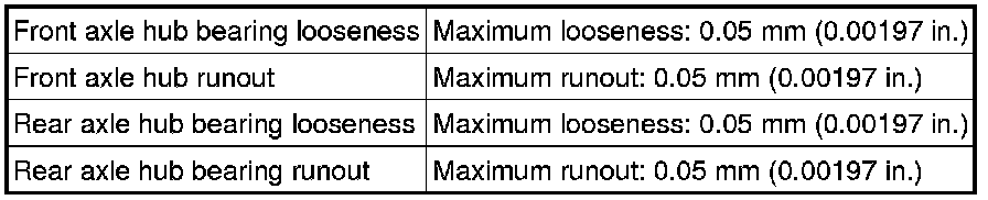 SPECIFICATIONS: AXLE AND DIFFERENTIAL: SERVICE DATA