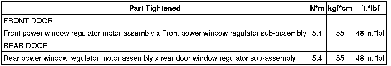 SPECIFICATIONS: WINDOW / GLASS: TORQUE SPECIFICATIONS