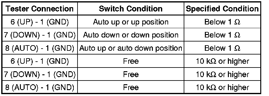 If the result is not as specified, replace the rear power window regulator switch assembly (for RH side).