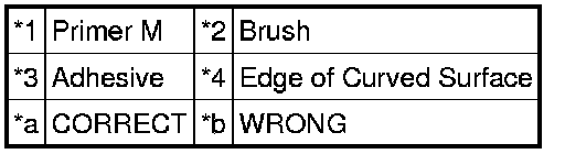 (b) Using a brush or sponge, coat the application area of a new windshield glass adhesive dam with Primer G.