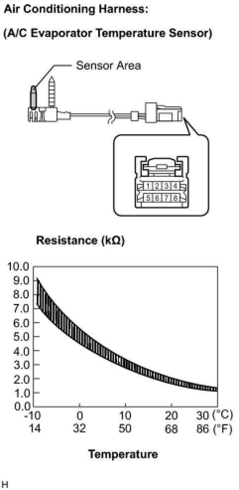 If the resistance is not as specified, replace the air conditioning harness (evaporator temperature sensor).