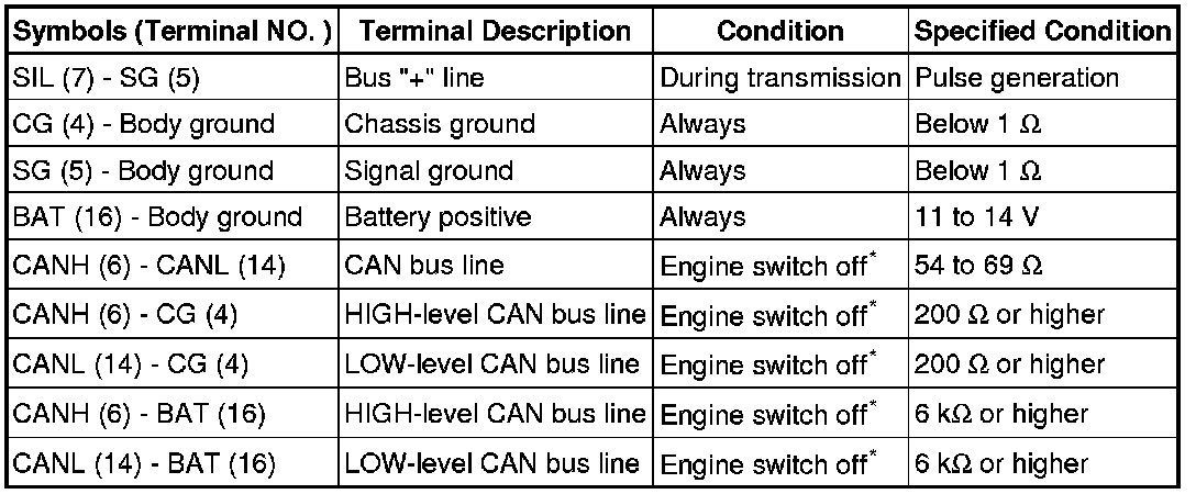 *: Before measuring the resistance, leave the vehicle as is for at least 1 minute and do not operate the engine switch, or any other switches or the doors.