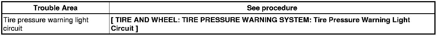 If the warning check result is not normal, proceed to the troubleshooting for the tire pressure warning light circuit.