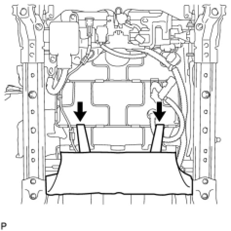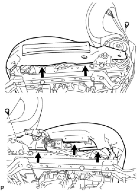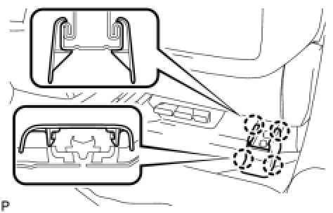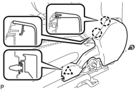 (b) Disengage the 2 claws and separate the front seat cushion shield assembly.