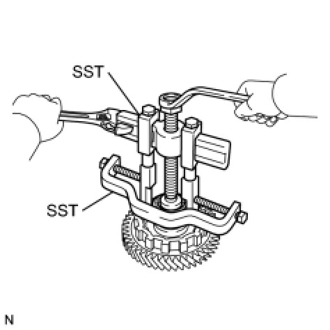 (c) Using SST, remove the nut from the planetary gear assembly.