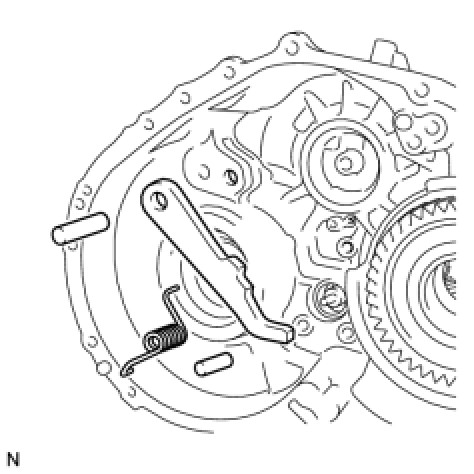 (b) Remove the 1st and reverse brake return spring from the transaxle case.