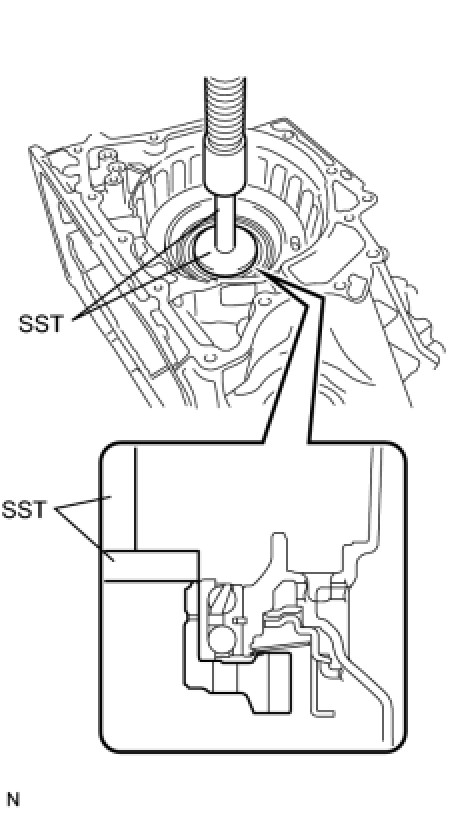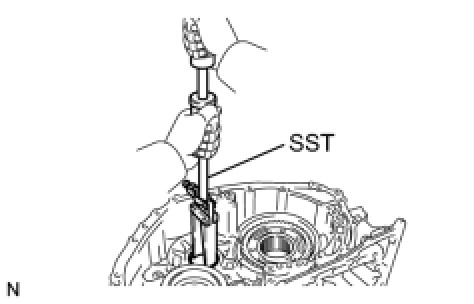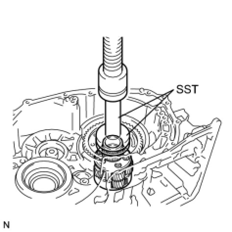 (a) Using SST, remove the counter driven gear rear tapered roller bearing outer race from the transaxle case.