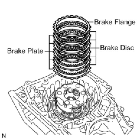 (b) Remove the brake flange, 5 brake discs, and 5 brake plates from the transaxle case.