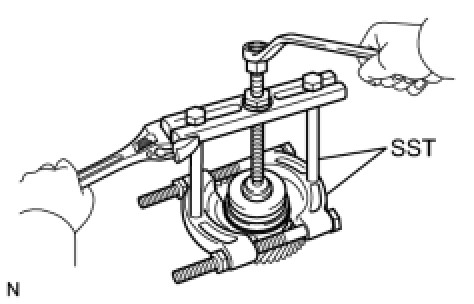 (a) Using SST, remove the counter driven gear front tapered roller bearing from the counter driven gear sub-assembly.