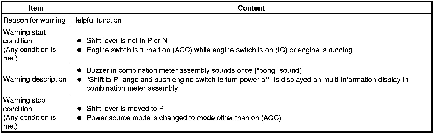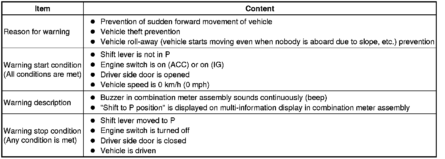 (a) Shift lever not in P (power source cut reminder) vehicle exit warning