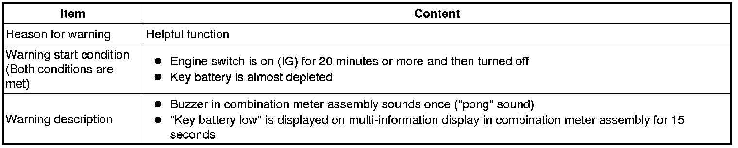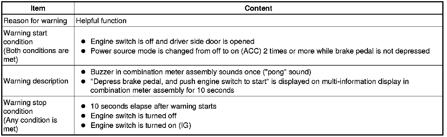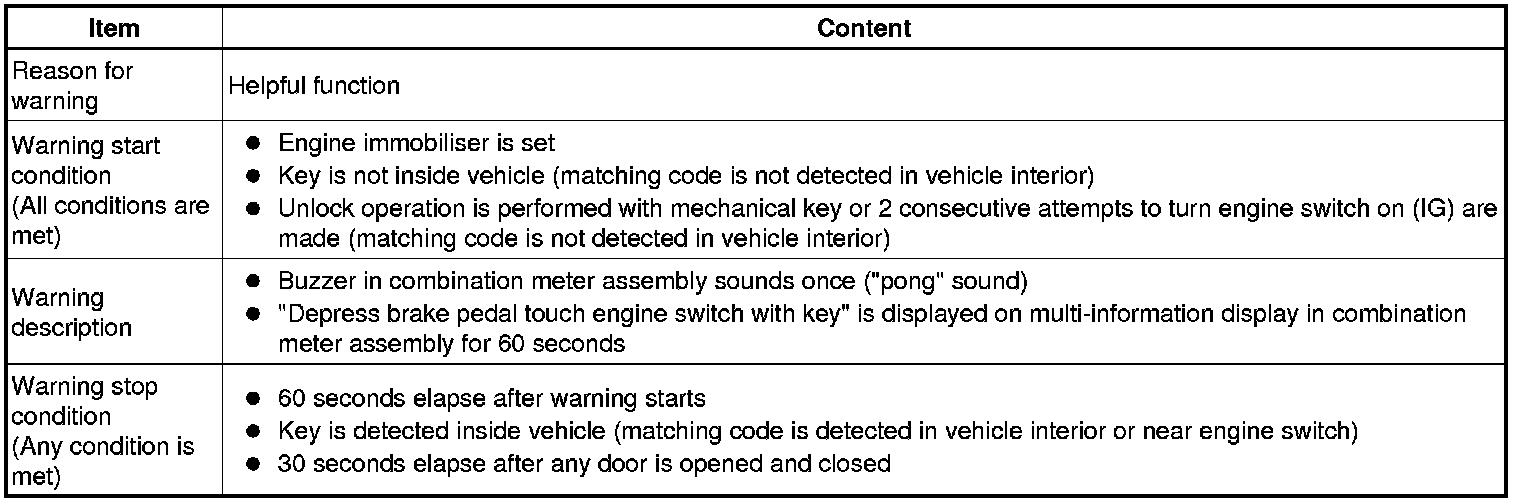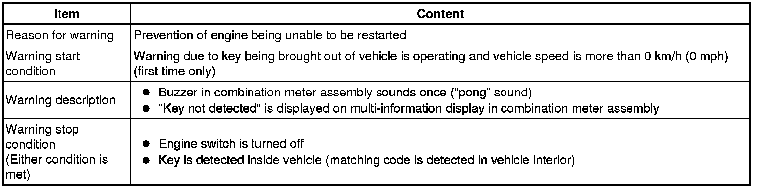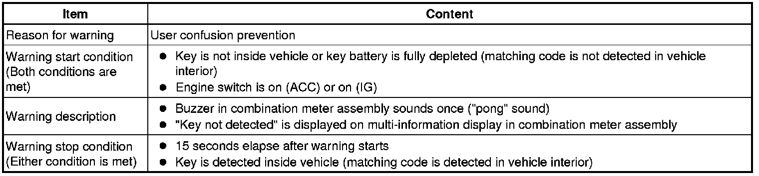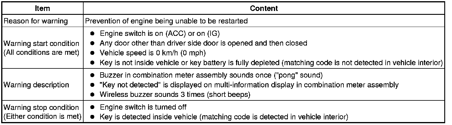 (1) An attempt is made to turn the engine switch on (ACC) or on (IG) or to start the engine while the key cannot be detected inside the vehicle or is not operating properly.