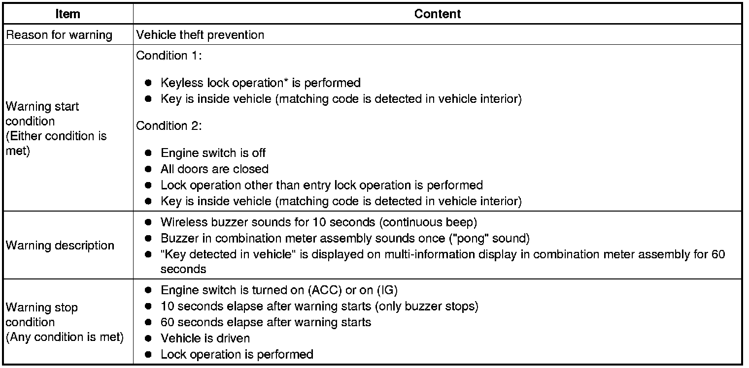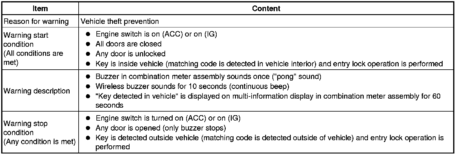 (1) An entry lock operation is attempted while the key is inside the vehicle.
