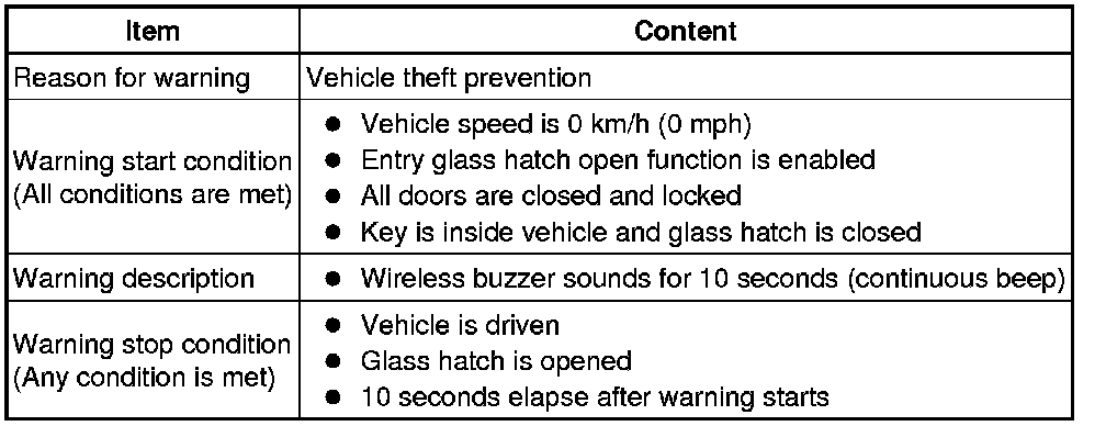 (2) Situation B: Under the conditions specified in situation A, the key is brought out of the vehicle, the driver side door is closed and movement away from the vehicle is attempted.
