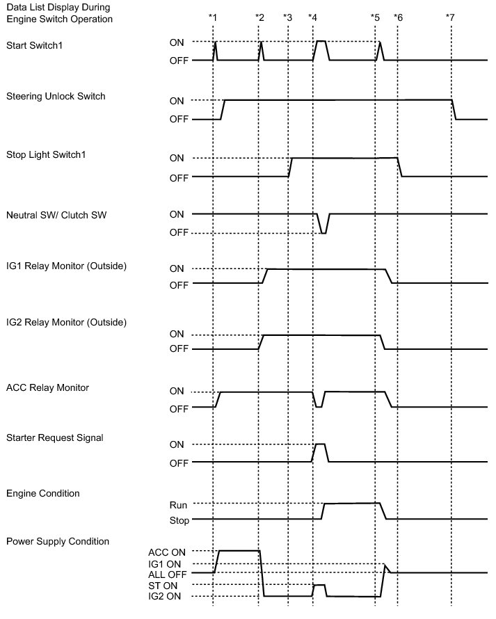 *1: Without depressing the brake pedal, press the engine switch and check that the power source mode turns on (ACC).