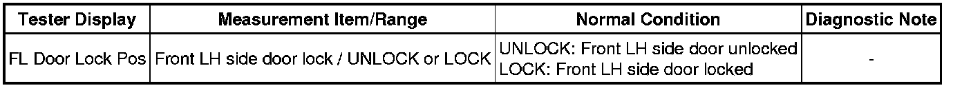 2. READ VALUE USING TECHSTREAM (DOOR LOCK POSITION SWITCH)