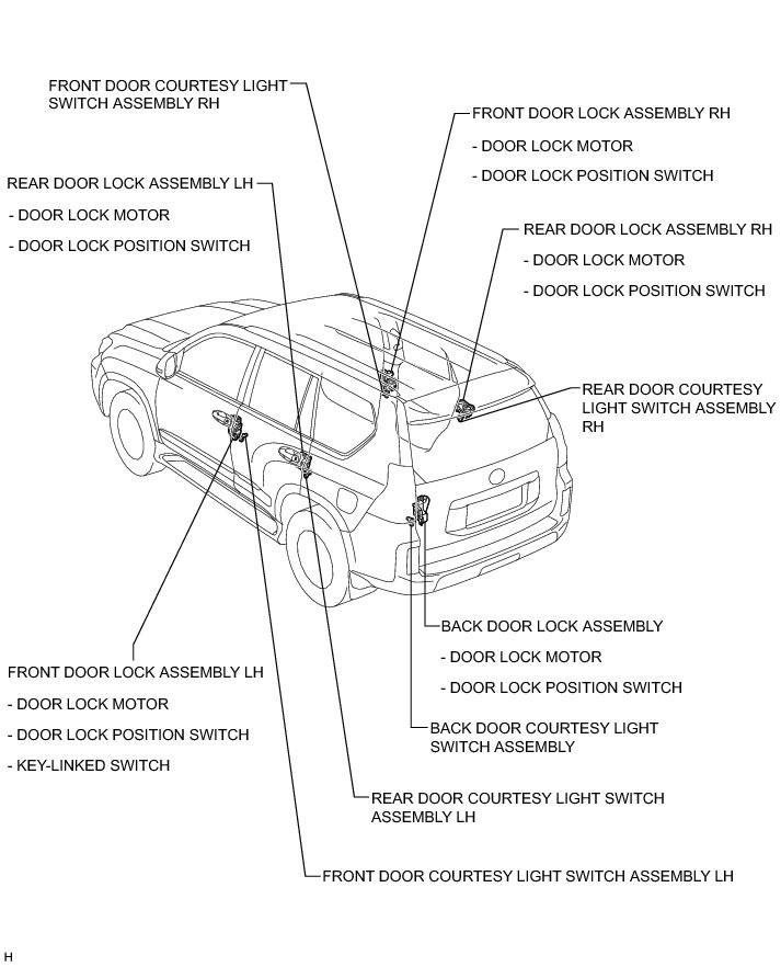 DOOR LOCK: POWER DOOR LOCK CONTROL SYSTEM: PARTS LOCATION