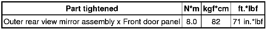 SPECIFICATIONS: MIRROR (EXT): TORQUE SPECIFICATIONS