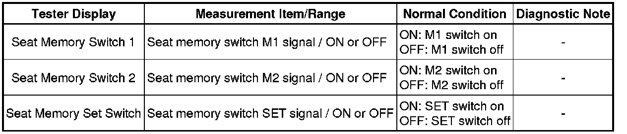 SEAT: FRONT POWER SEAT CONTROL SYSTEM: DATA LIST / ACTIVE TEST