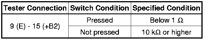 If the result is not as specified, replace the combination switch assembly (downhill assist control switch).