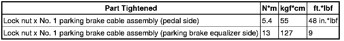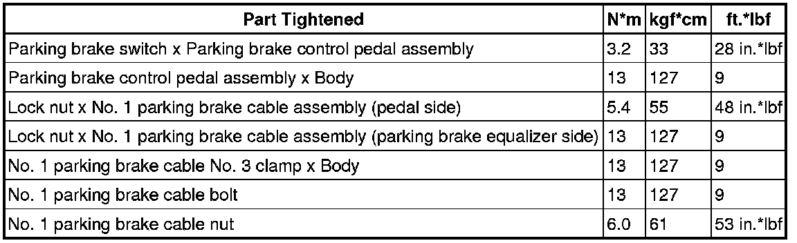 SPECIFICATIONS: PARKING BRAKE: TORQUE SPECIFICATIONS