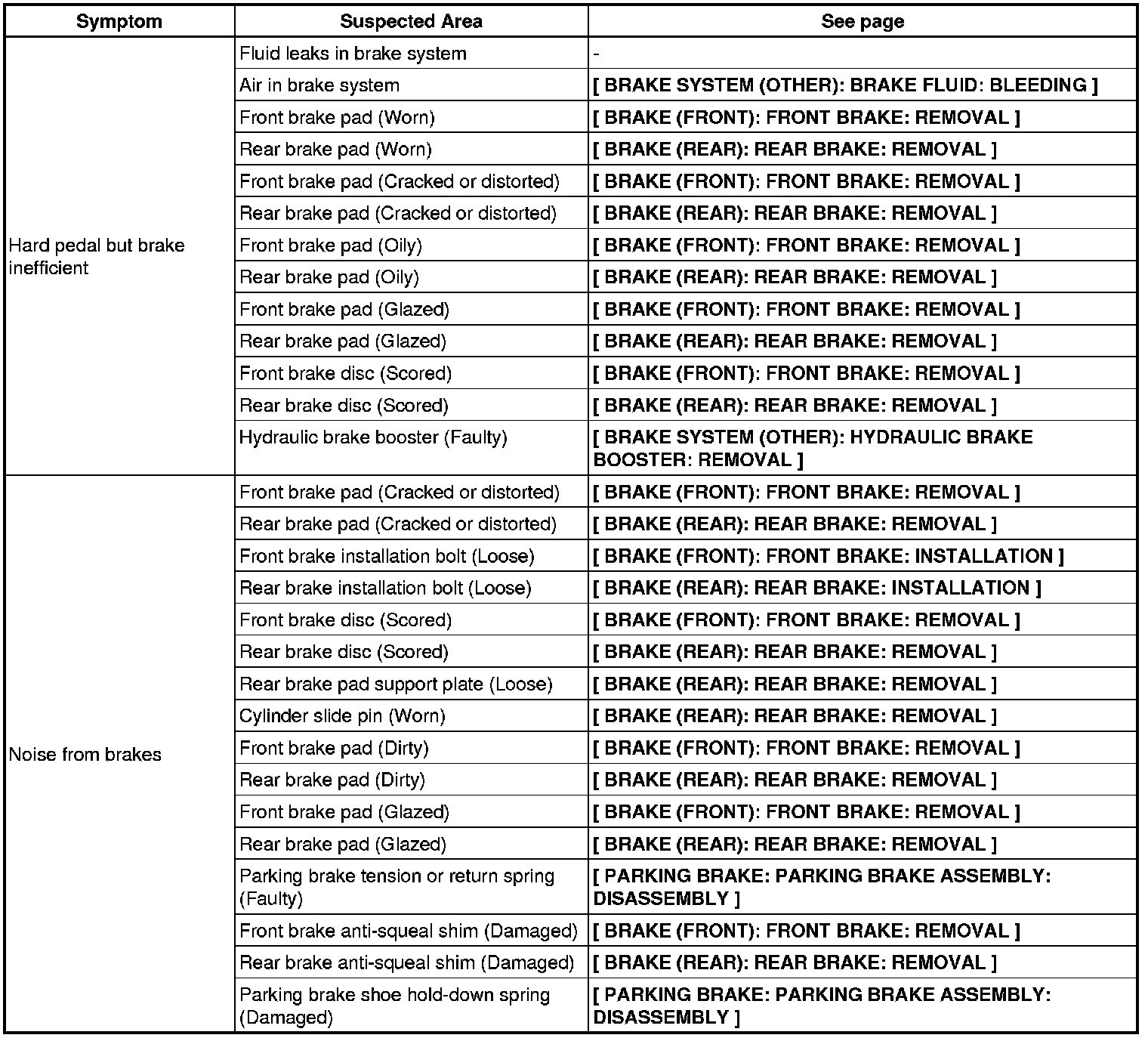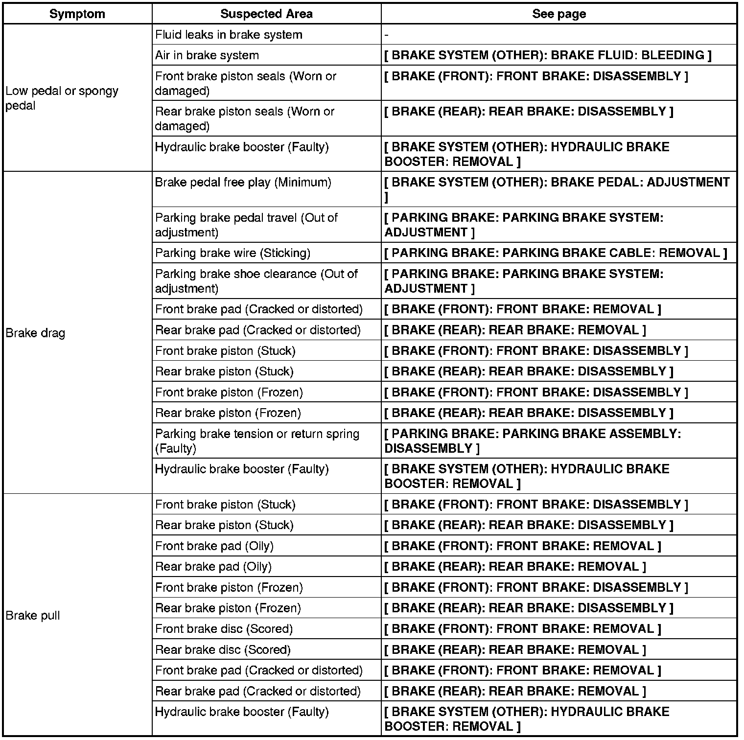 BRAKE SYSTEM (OTHER): BRAKE SYSTEM: PROBLEM SYMPTOMS TABLE