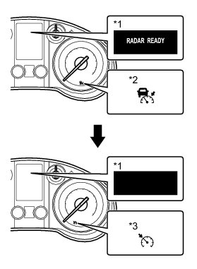 (b) Turn the cruise control switch on. Check that "RADAR READY" is indicated on the multi-information display and that the cruise control indicator light turns on.