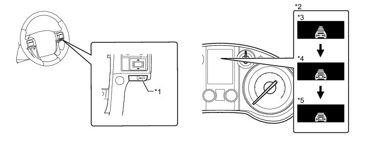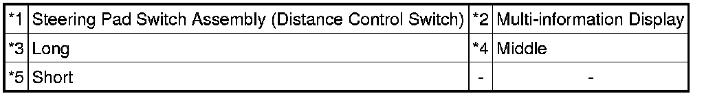 (d) Check that the indication of the vehicle-to-vehicle distance, which is shown in the multi-information display in the combination meter assembly, changes from long to middle to short in that order.