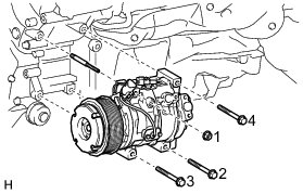 (c) Tighten the 3 bolts and nut in the sequence shown in the illustration.