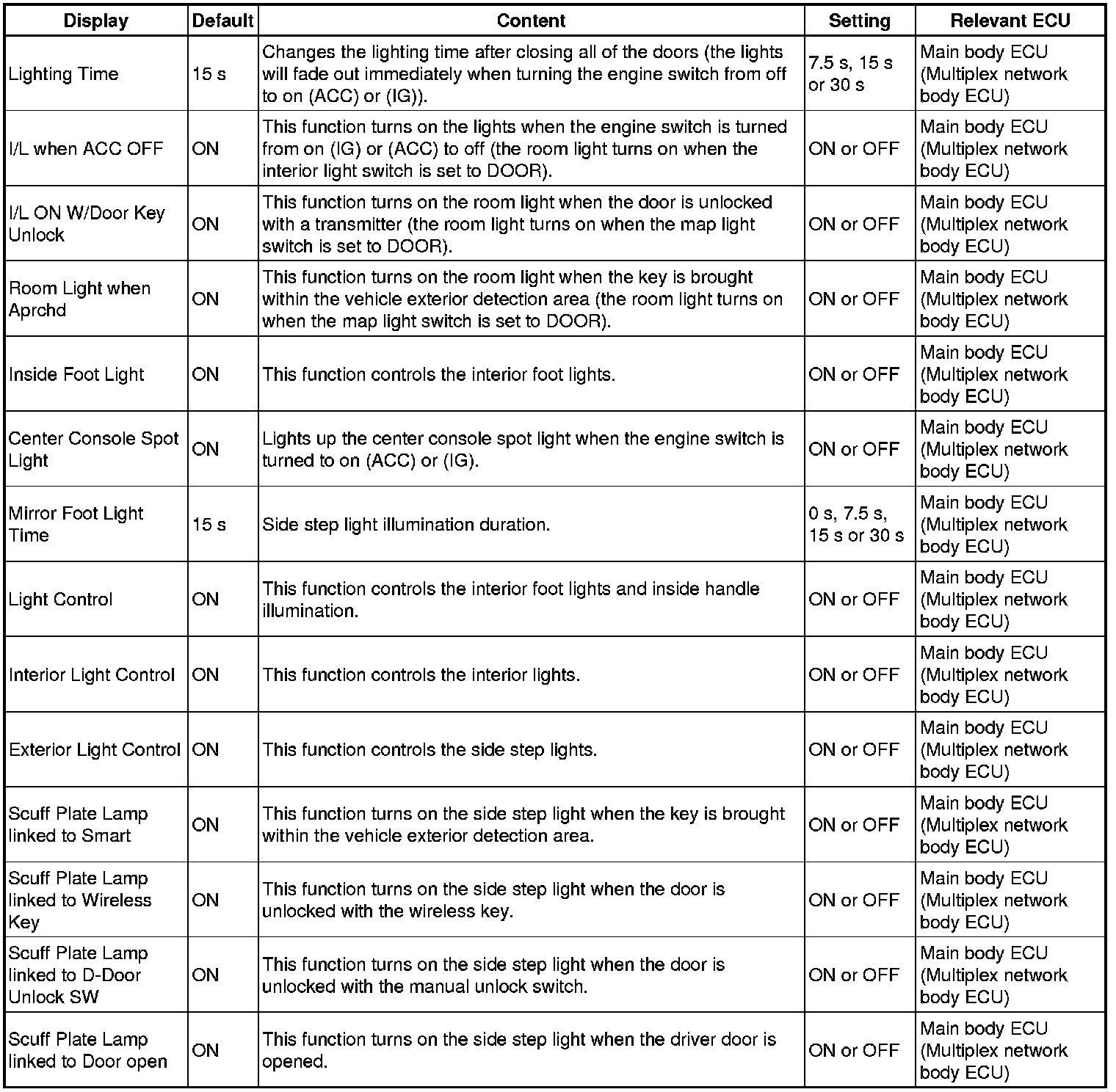 LIGHTING (INT): LIGHTING SYSTEM: CUSTOMIZE PARAMETERS