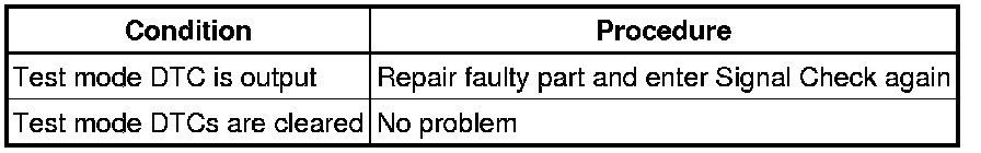 After the signal check is completed, check for test mode (signal check mode) DTCs to confirm the system status.