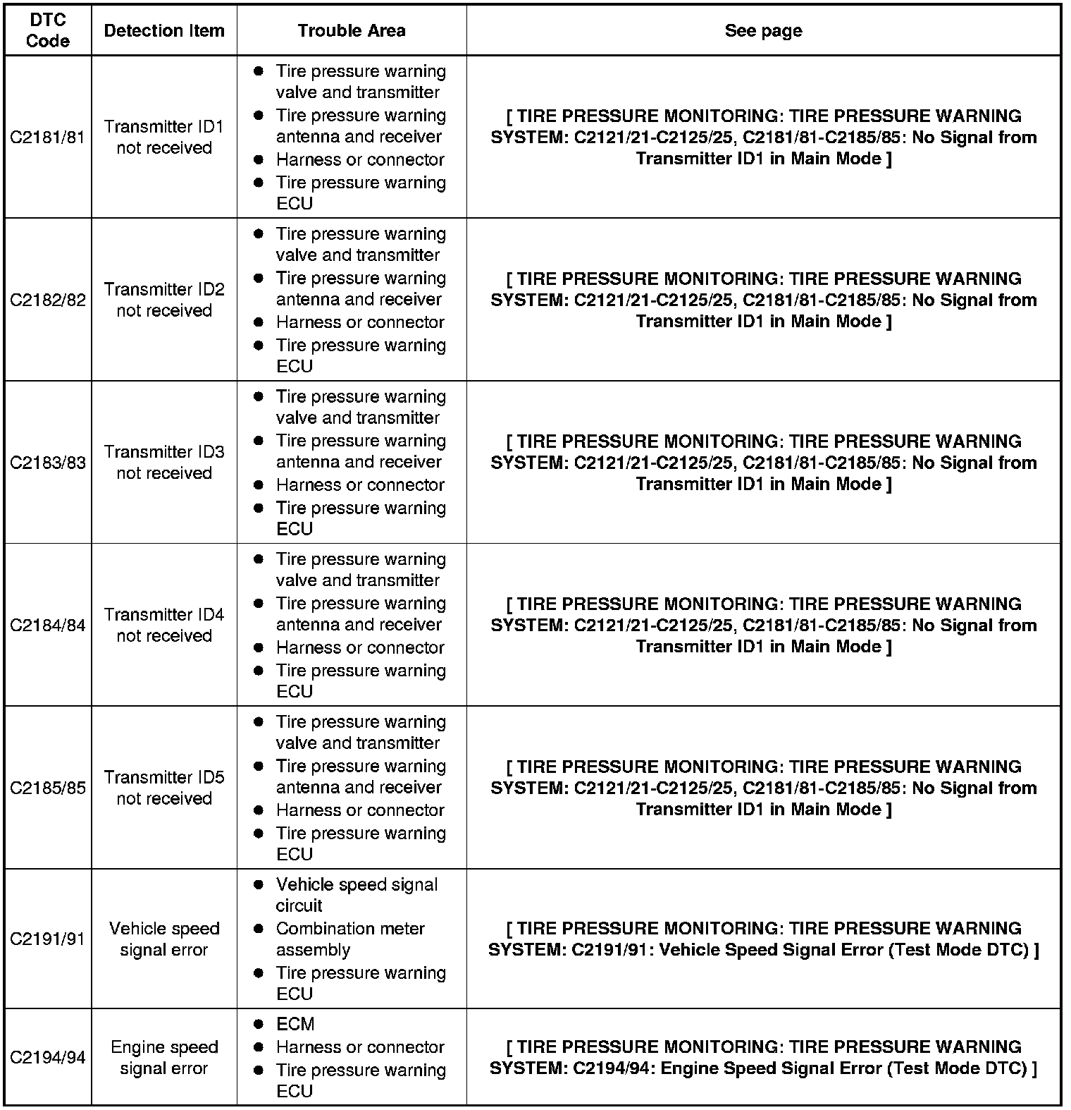 * When entering signal check mode, the tire pressure warning ECU stores all the signal check DTCs first. After completing the signal check for each inspection item, the DTCs for systems that are determined to be normal by the tire pressure warning ECU are cleared.