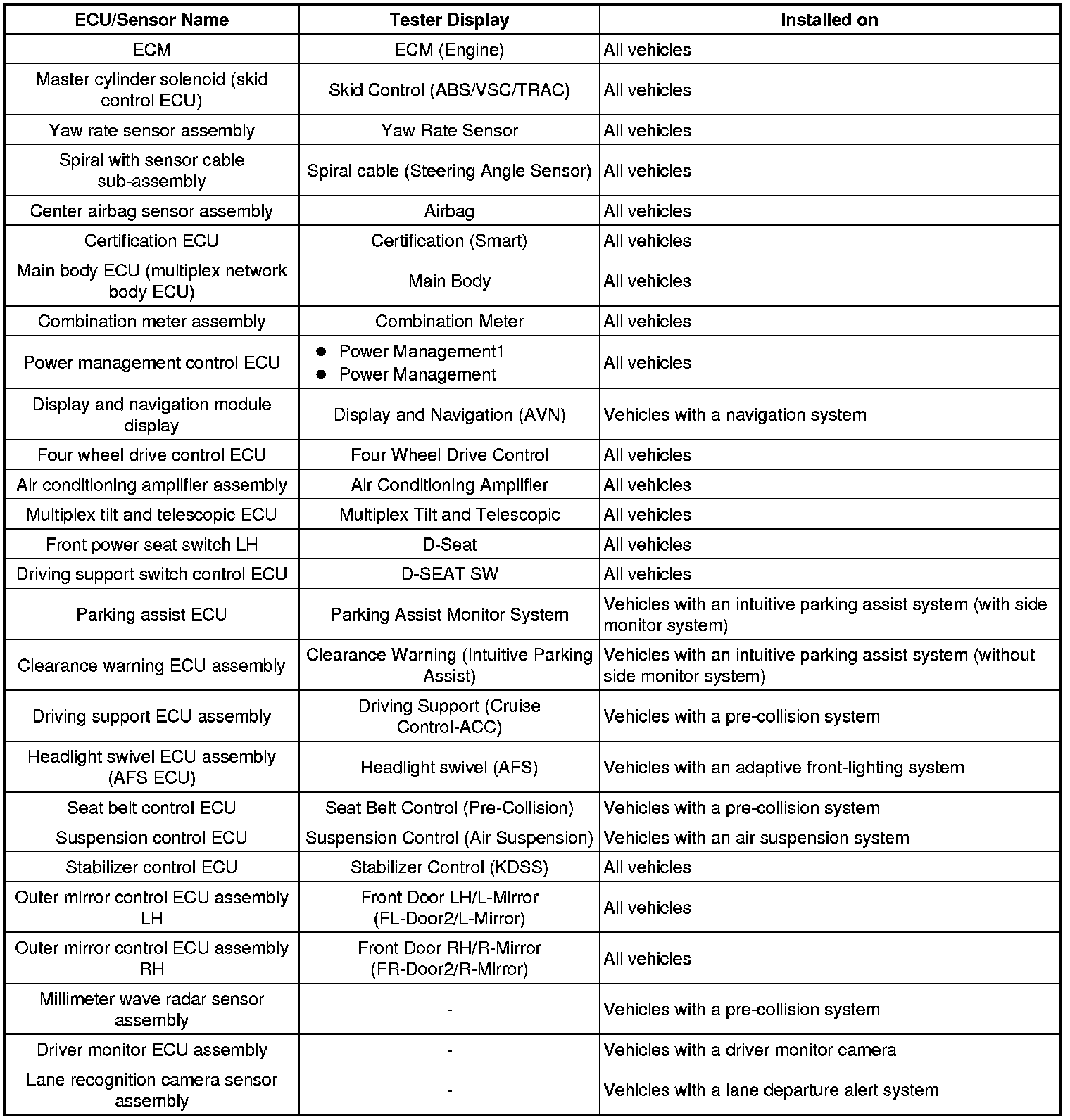 (a) Systems (ECUs and sensors) that use CAN communication vary depending on the optional settings of the vehicle. Check which systems (ECUs and sensors) are installed on the vehicle.